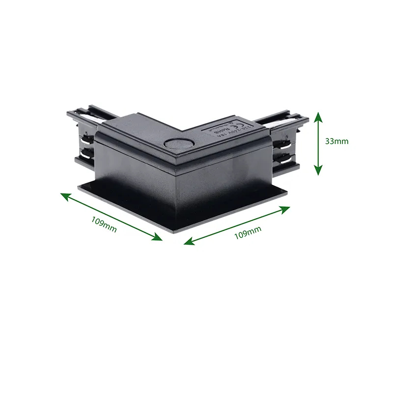 De Luxar Inbouw 3 Fase L-Vorm Connector Outside Zwart is een hoogwaardige oplossing voor het realiseren van strakke en betrouwbare buitenhoekverbindingen binnen 3 fase railverlichtingssystemen. Deze connector maakt het mogelijk om twee raildelen onder een haakse buitenhoek (90°) met elkaar te verbinden, en is daarmee ideaal voor lichtontwerpen die langs buitenhoeken van muren of plafonds moeten doorlopen.