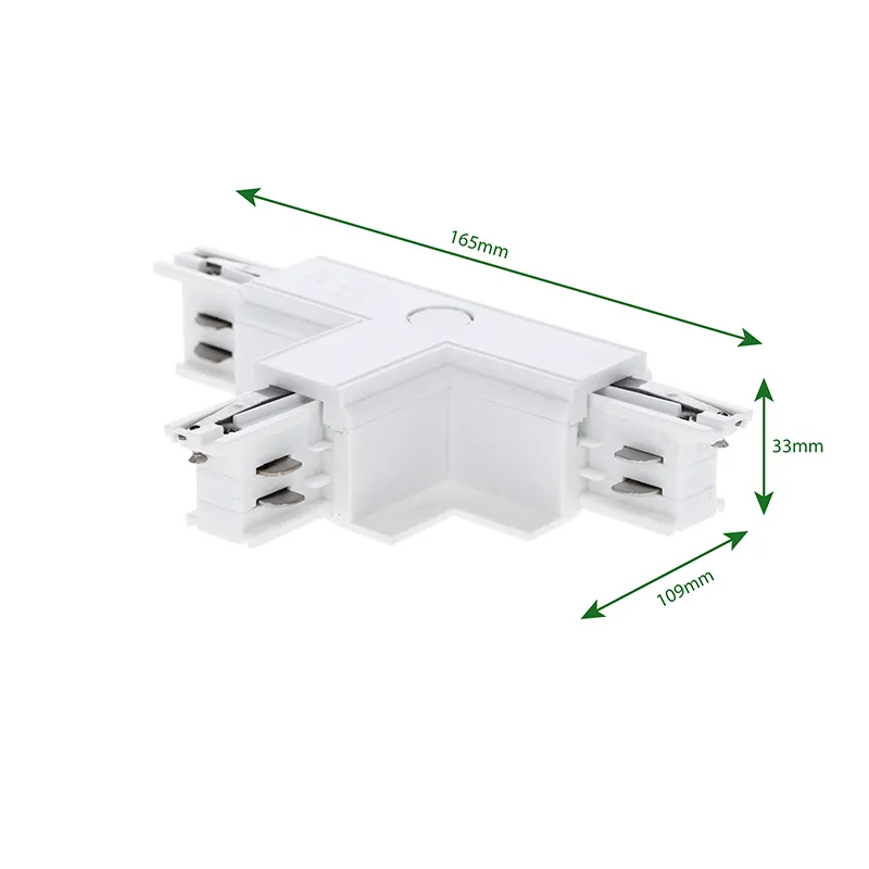 De Luxar Inbouw 3 Fase T-Vorm Connector Left-1 Wit is een essentiële component voor het uitbreiden van uw 3 fase railverlichtingssysteem met een haakse aftakking. Deze witte T-connector is ontworpen voor inbouwmontage en zorgt voor een stabiele, veilige en visueel strakke aansluiting tussen drie railsegmenten. Het compacte ontwerp in combinatie met hoogwaardige materialen maakt deze connector geschikt voor professioneel gebruik in winkels, showrooms, kantoren en moderne interieurs.