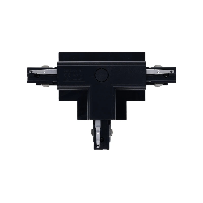 De Luxar Inbouw 3 Fase T-Vorm Connector Left-1 Zwart is een technisch hoogwaardige en visueel discrete oplossing voor het creëren van haakse aftakkingen binnen een 3 fase inbouw railverlichtingssysteem. Deze zwarte T-connector is ontworpen voor een naadloze verbinding van drie railsegmenten en biedt maximale betrouwbaarheid en gebruiksgemak in commerciële en industriële omgevingen.