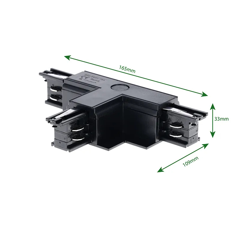 De Luxar Inbouw 3 Fase T-Vorm Connector Left-2 Zwart is een betrouwbare en visueel discrete oplossing voor het haaks koppelen van drie railsegmenten in uw 3 fase railverlichtingssysteem. Dankzij de robuuste bouwkwaliteit, strakke afwerking en eenvoudige montage is dit een ideale keuze voor professionele installaties in onder meer winkels, kantoren, showrooms en moderne interieurs.