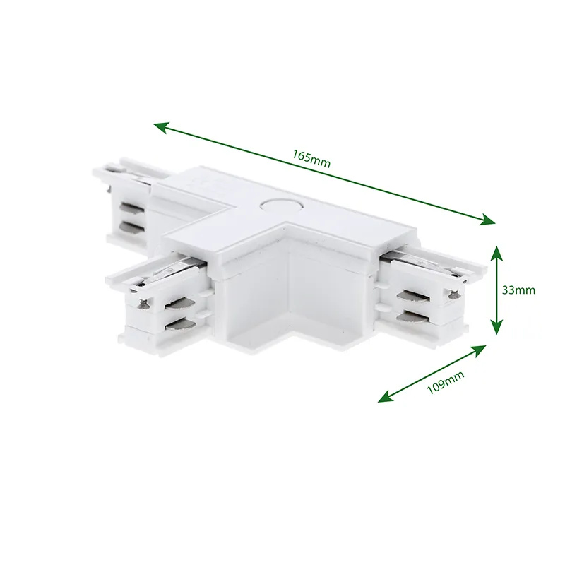 De Luxar Inbouw 3 Fase T-Vorm Connector Right-2 Wit is speciaal ontwikkeld voor het creëren van een nette haakse aftakking in een 3 fase railverlichtingssysteem. Met zijn compacte formaat, robuuste constructie en betrouwbare prestaties is deze witte T-connector de ideale keuze voor professionele toepassingen in onder andere winkels, kantoren, showrooms en moderne interieurs.