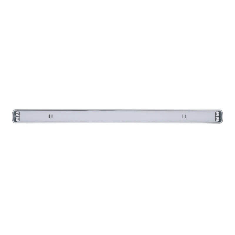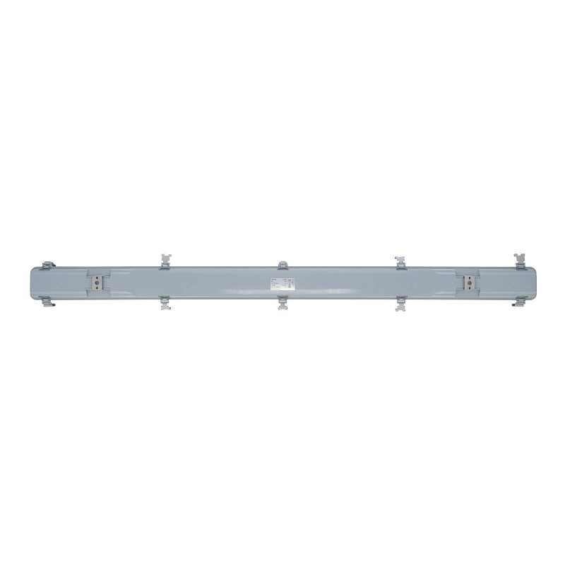 De behuizing bestaat uit een stevige ijzeren backplate, slagvast ABS en een heldere polycarbonaat cover. Met zijn lengte van 1576 mm en slanke profiel laat dit armatuur zich eenvoudig integreren in diverse installaties. Een belangrijk voordeel is dat het armatuur doorvoerbaar is, waardoor meerdere exemplaren eenvoudig in serie kunnen worden aangesloten om een doorlopende lichtlijn te creëren.