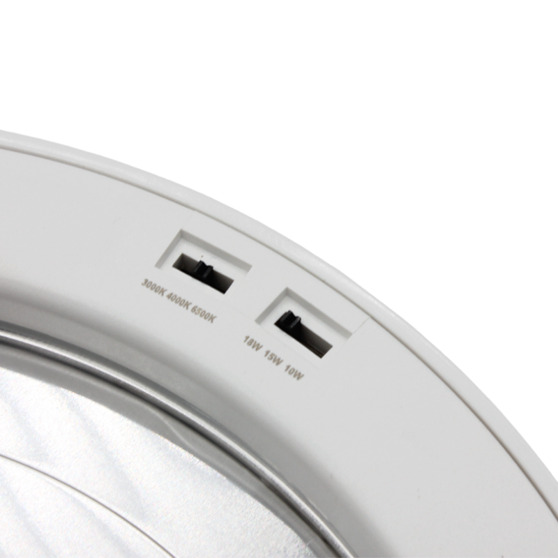 De Luxar LED Downlight In/Opbouw met CCT+Watt Switch is een krachtige en flexibele armatuur voor uiteenlopende toepassingen in de utiliteit. Dankzij de dubbele schakelaar stelt u zowel de kleurtemperatuur (3000K, 4000K of 6500K) als het vermogen (10W, 15W of 18W) eenvoudig handmatig in. Dit biedt maximale controle over lichtsterkte en sfeer, afgestemd op de ruimte en het moment.
