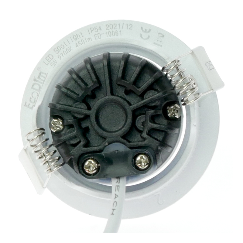 Deze LED inbouwspot verbruikt slechts 5 Watt en levert 450 lumen. Met een lumen efficiëntie van 90 lumen per watt bespaart u tot 90% energie in vergelijking met traditionele verlichting. Bovendien is de spot dimbaar tot 5%, zodat u de lichtintensiteit kunt aanpassen aan de gewenste sfeer.