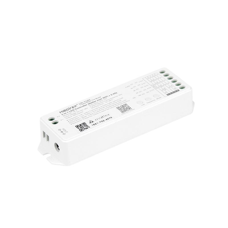 De controller ondersteunt verschillende typen LEDstrips, waaronder Single Color, CCT, RGB, RGBW en RGBCCT, en is geschikt voor spanningen van 12 tot 48V DC. Via WiFi en 2.4G draadloze communicatie bedient u uw verlichting eenvoudig met een app, afstandsbediening of spraakbesturing. De configuratie verloopt snel en stabiel, wat deze controller geschikt maakt voor zowel particuliere als professionele installaties.