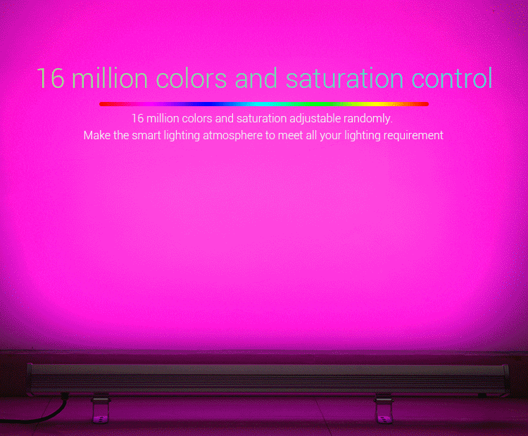 De Mi-Light Wall Washer is uitgerust met 24 geavanceerde UCS2903B driver chips, die zorgen voor een razendsnelle SPI-signaalverwerking. U geniet van vloeiende overgangen, dynamische effecten en keuze uit meer dan 16 miljoen kleuren. Bovendien kunt u de helderheid naar wens instellen, voor een perfect afgestemde ambiance.