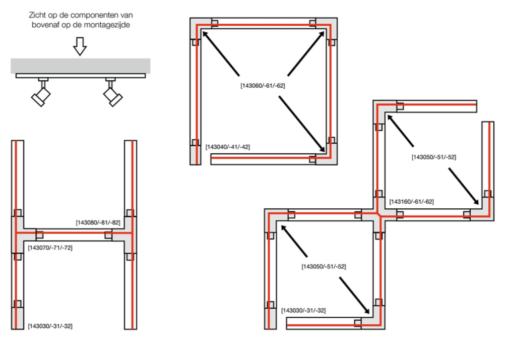kruisingen, spots, pendel-adapters en eindkapjes. Kijk bij gerelateerde