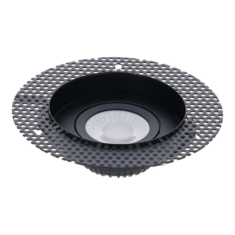 Het stucframe is vervaardigd uit stevig staal en is bestand tegen mechanische belasting tijdens zowel installatie als langdurig gebruik. Hierdoor blijft de bevestiging stabiel en wordt verschuiven of vervormen voorkomen. Dankzij de nauwkeurig afgestemde zaagmaat en doorsnede is het frame geschikt voor diverse gangbare GU10 armaturen en sluit het netjes aan op het plafond of de wand.