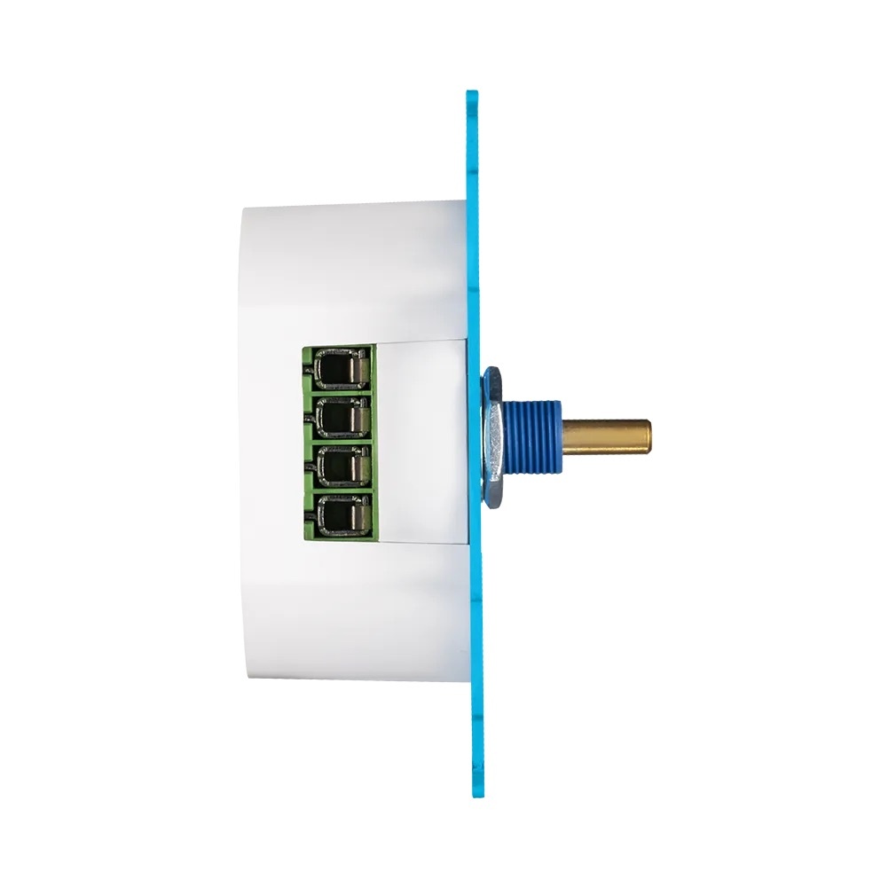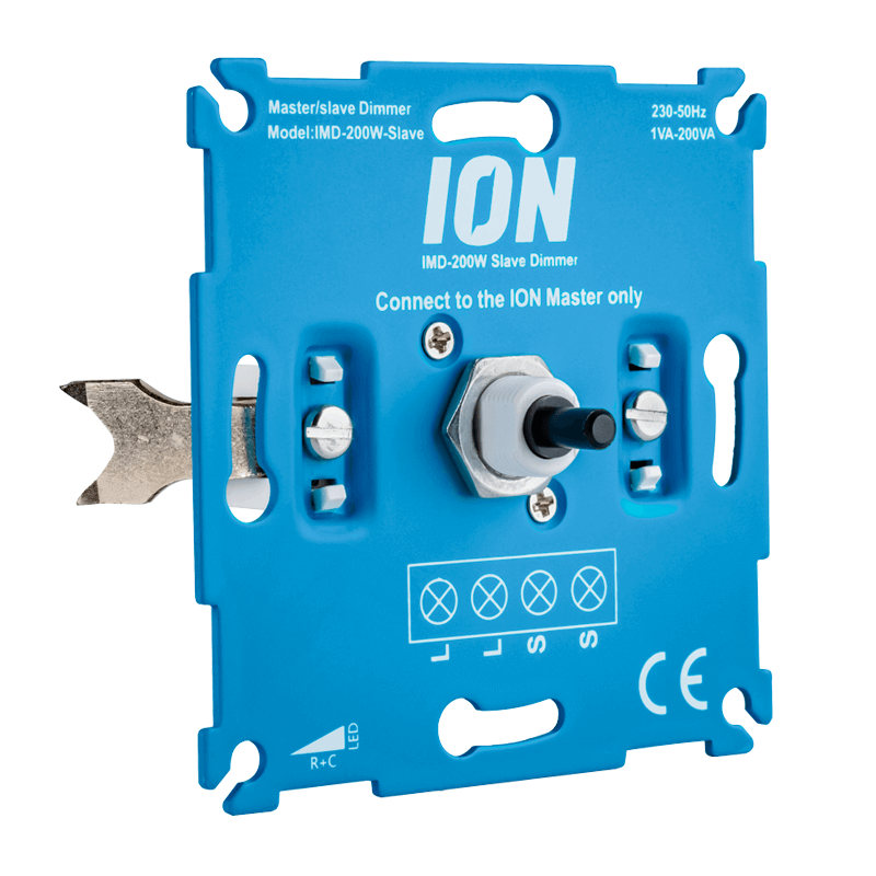 De dimmer is voorzien van een boostfunctie tegen het popcorn-effect en beschikt over instelbare minimale en maximale dimwaarden via stelschroeven. Hierdoor kan de lichtregeling nauwkeurig worden afgestemd op de aangesloten verlichting. Dankzij de mogelijkheid om zonder nuldraad te installeren is deze slave dimmer ideaal voor renovaties en bestaande installaties waar flexibiliteit en installatiegemak centraal staan.