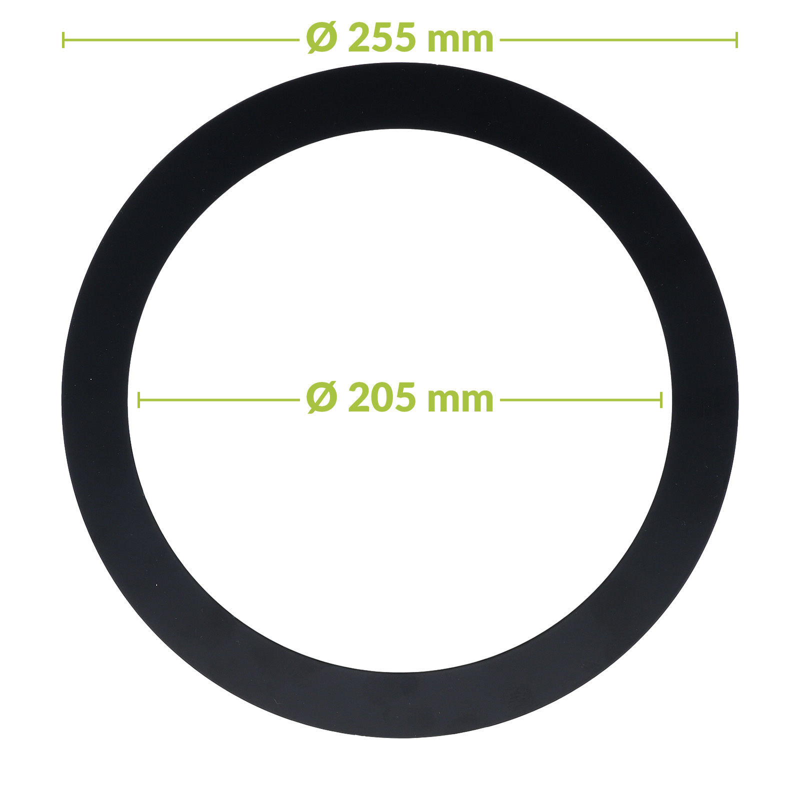 Met een binnenmaat van Ø205 mm en een buitenmaat van Ø255 mm is deze verloopring ontworpen om grotere openingen netjes te overbruggen voor downlighters met een kleinere maat. De slanke dikte van 0,8 mm draagt bij aan een subtiele afwerking, terwijl het metaal zorgt voor stabiliteit en een verzorgde montage.