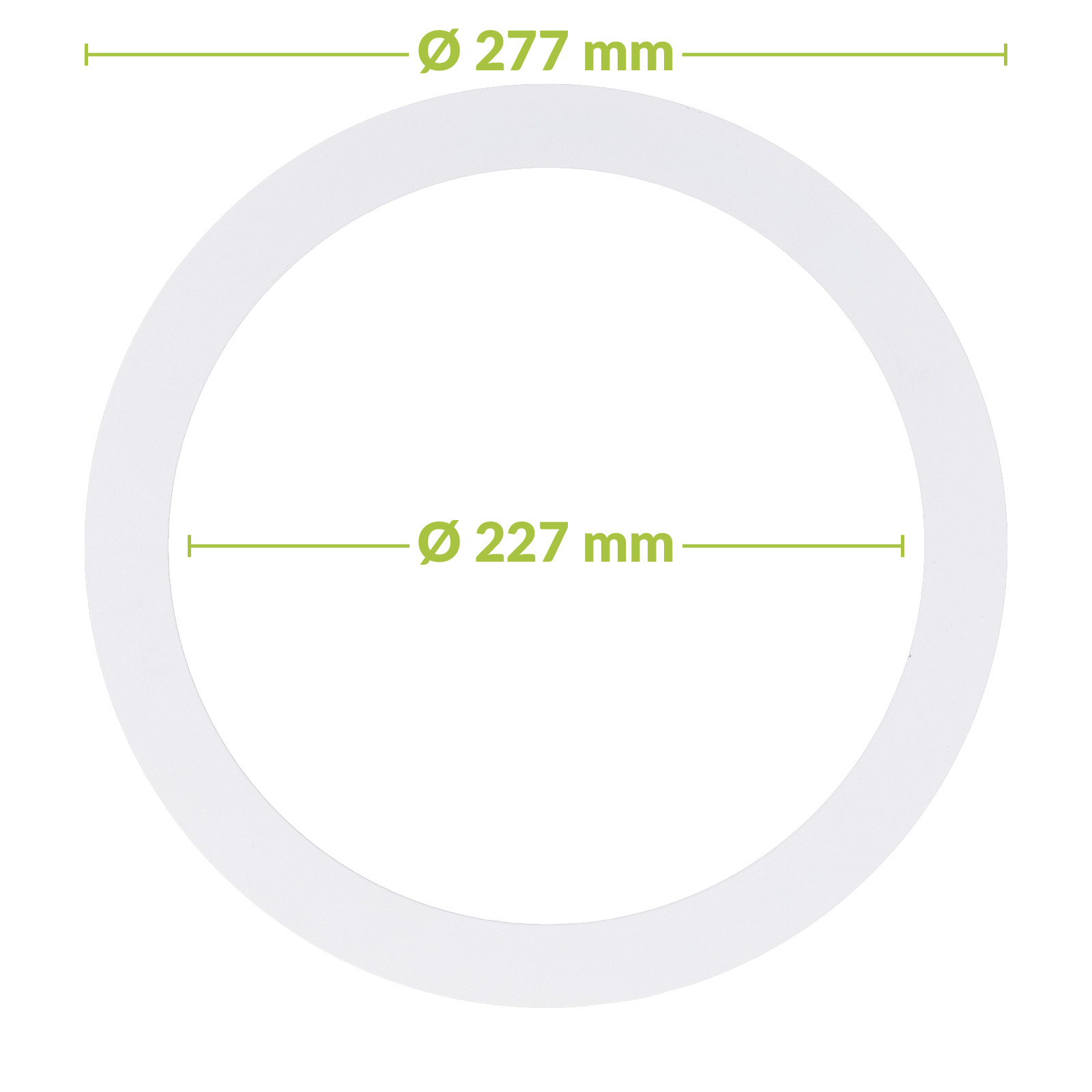 Met een binnenmaat van Ø227 mm en een buitenmaat van Ø277 mm is deze verloopring ontworpen om grotere openingen netjes te overbruggen voor inbouwspots met een kleinere maat. De slanke dikte van 0,8 mm draagt bij aan een subtiele afwerking, terwijl het metaal zorgt voor stabiliteit en een verzorgde montage.