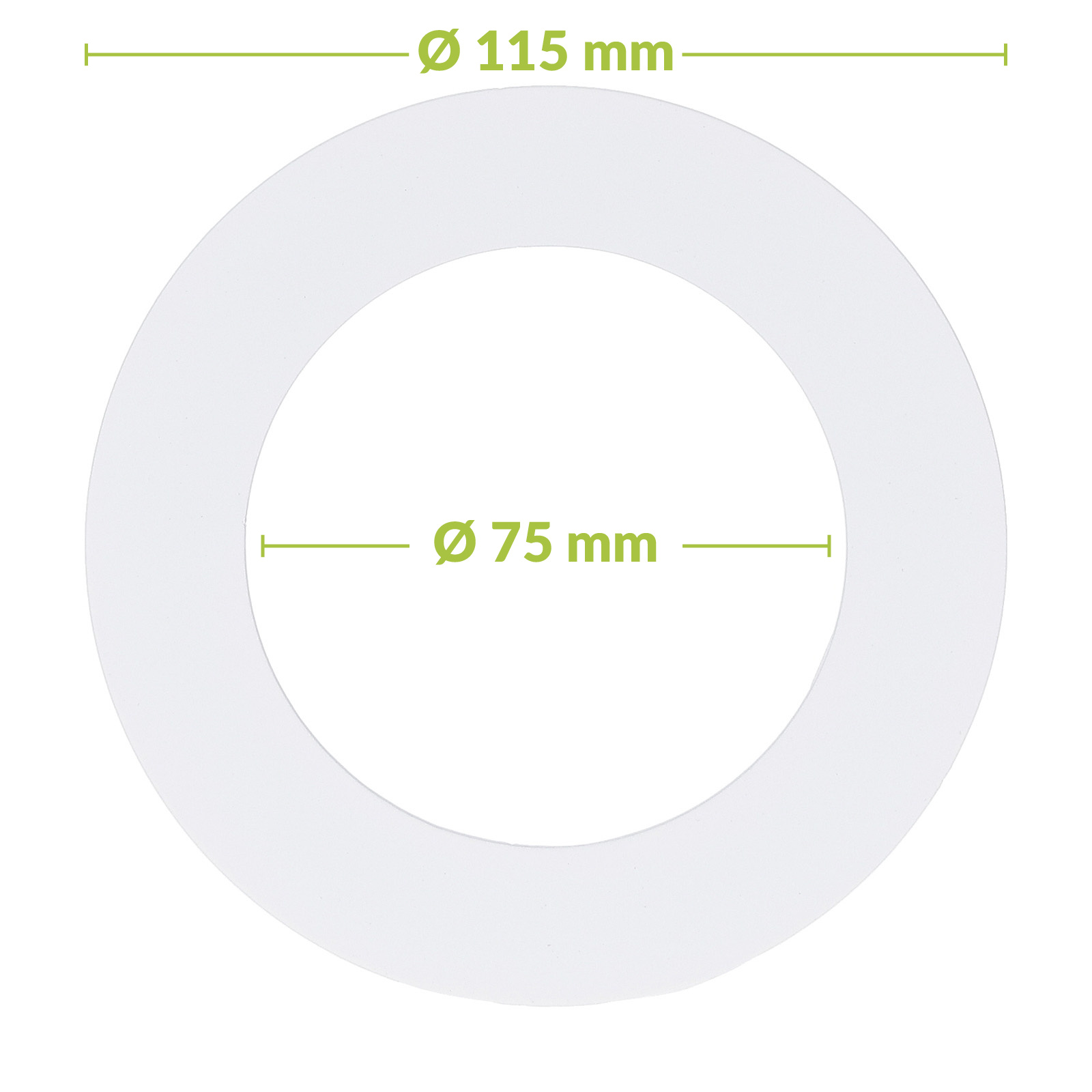 Met een binnenmaat van Ø75 mm en een buitenmaat van Ø115 mm is deze verloopring ontworpen om grotere openingen netjes te overbruggen voor inbouwspots met een kleinere maat. De slanke dikte van 0,8 mm draagt bij aan een subtiele afwerking, terwijl het metaal zorgt voor stabiliteit en een verzorgde montage.