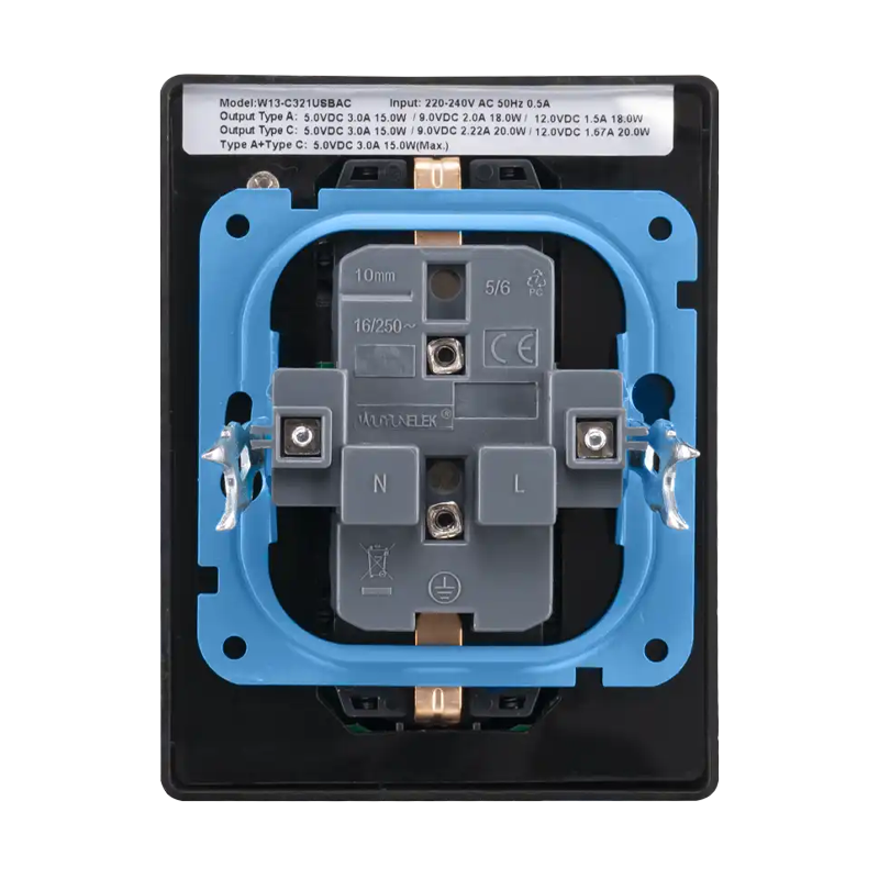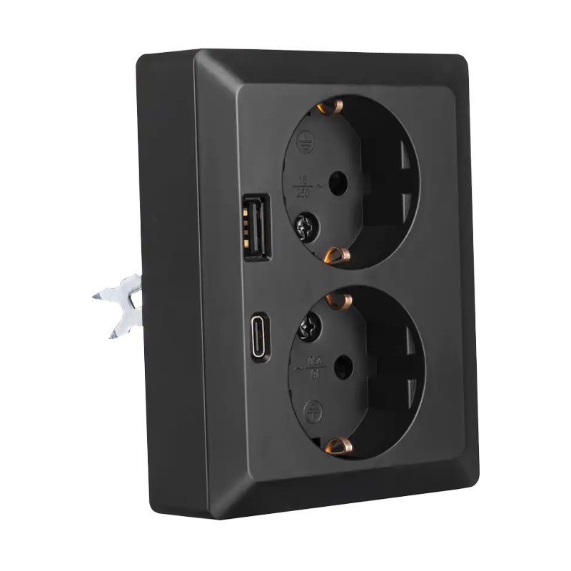 De Luxar half opbouw wandcontactdoos 2-voudig geaard met USB-A en USB-C in mat zwart combineert functionaliteit en design in één. Met twee stopcontacten en geïntegreerde USB-poorten kunt u meerdere apparaten tegelijk aansluiten en opladen, van smartphones en tablets tot laptops en kantoorapparatuur. Extra adapters zijn niet meer nodig.
